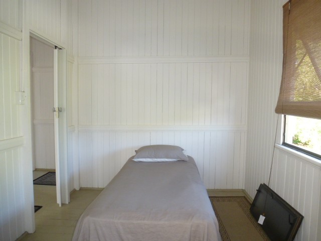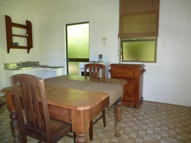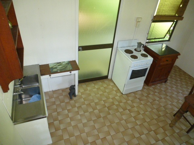 This 2 bedroom highset timber home, has the 2 bedrooms upstairs that opens up to a enclosed large sleepout, and bathroom. Downstairs is the kitchen, dining room, laundry, toilet and massive enclosed room that was previously used as a art gallery. The kitchen leads out to the undercover patio which overlooks the private backyard with a selection of trees and plants. Great corner block, located across the road from the hospital and walking distance to all town facilities and schools. Priced to sell at only $145,000 neg.