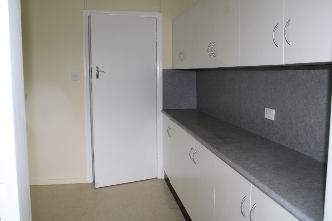 Large kitchen with plenty of bench space and extra room for a large fridge and a table or benches. Open plan dining/living room that opens up to the front patio.